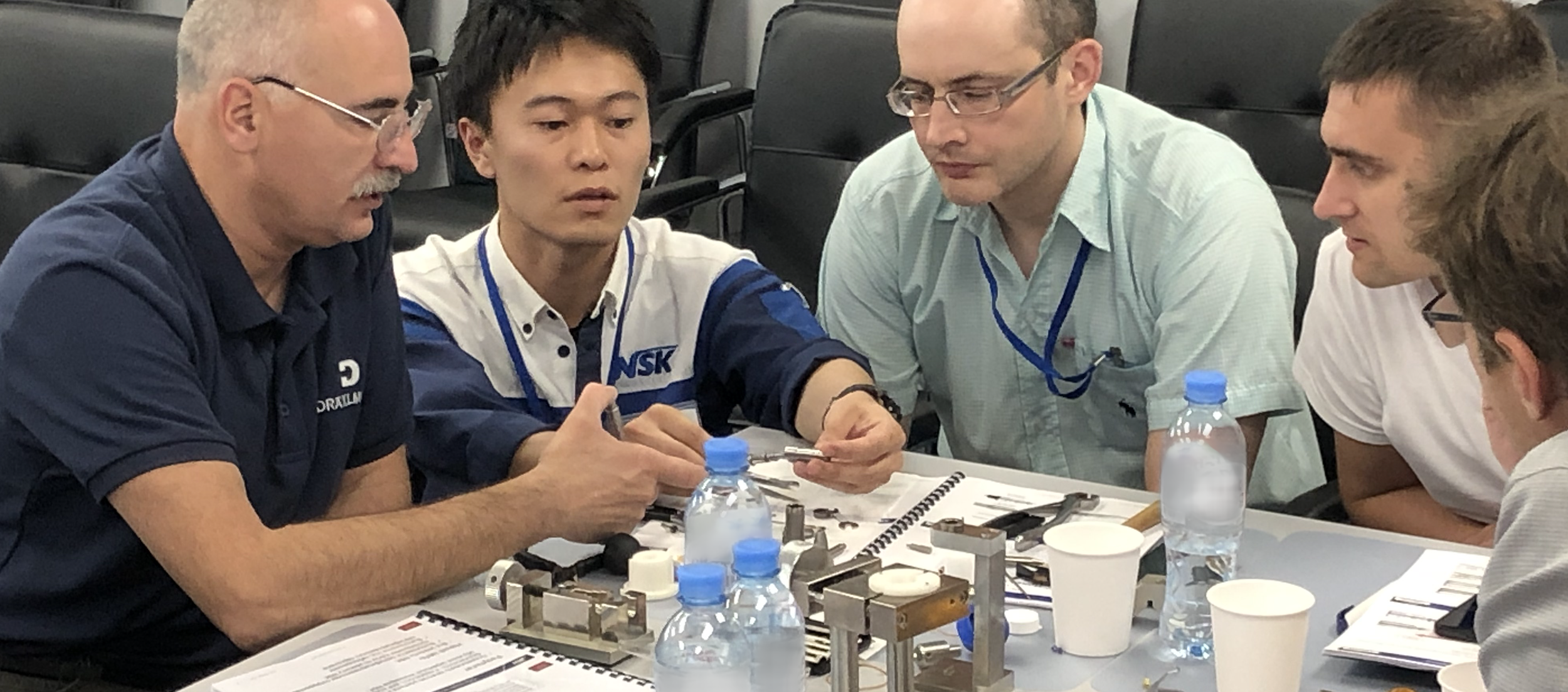 Les techniciens chargés de la réparation de nos produits suivent une formation au siège et dans les filiales à travers le monde. Les techniciens qui atteignent un certain niveau de compétence et de connaissance deviennent des formateurs qualifiés, qui sont autorisés à superviser les réparations. Il y a actuellement 26 formateurs qualifiés et environ 120 réparateurs au siège social de NSK et dans les filiales.